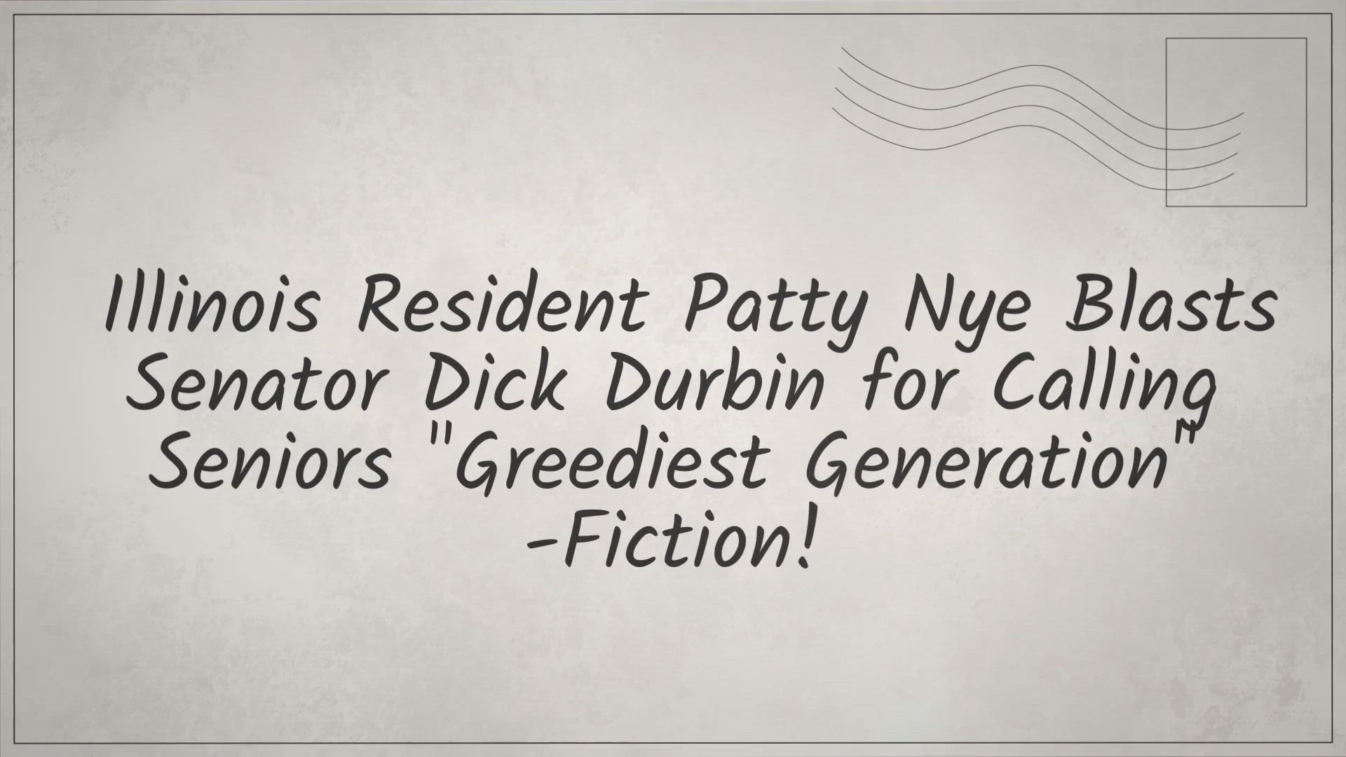 Illinois Resident Patty Nye Blasts Senator Dick Durbin for Calling Seniors "Greediest Generation"-Fiction!